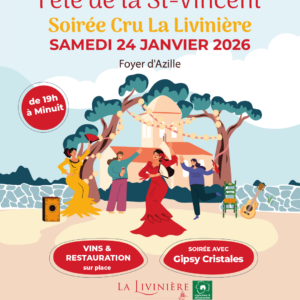 Rendez-vous le 25 janvier prochain à la salle polyvalente de La Livinière pour fêter ensemble la Saint Vincent, patron des vignerons. Nous vous attendons avec nos plus belles bouteilles en Cru La Livinière pour partager une belle soirée de fête !