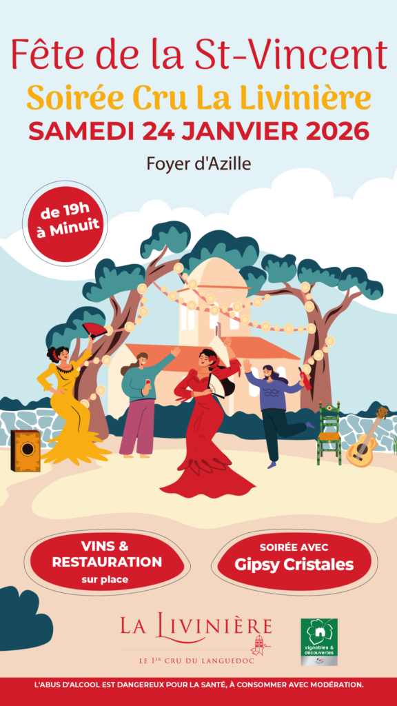 Rendez-vous le 24 janvier prochain au foyer d’Azille pour fêter ensemble la Saint Vincent, patron des vignerons. Nous vous attendons avec nos bonnes bouteilles en Cru La Livinière pour partager une belle soirée de fête !